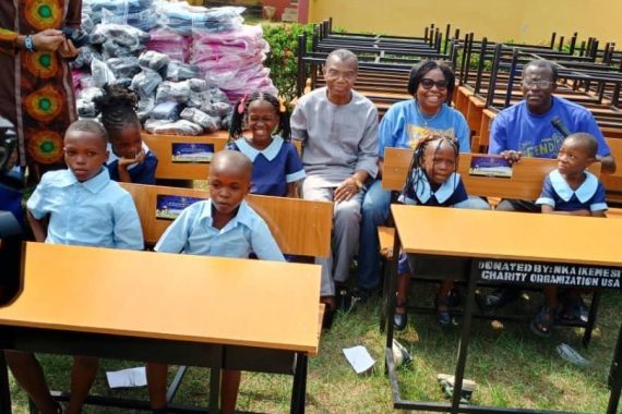 In October 2023, Nka Ikem Esit (Washington D.C. Chapter) learned of Citizens Academy, an Elementary School in Calabar, where orphans, underprivileged and at-risk children were sitting on the floor, in make-shift classrooms in an uncompleted building without chairs, desks or even windows. With only a month in office, the new Nka administration led by President Rita Nyambi and Vice President Vivienne Asuquo swung into action and mobilized Nka members to coordinate the procurement and delivery of the following items: